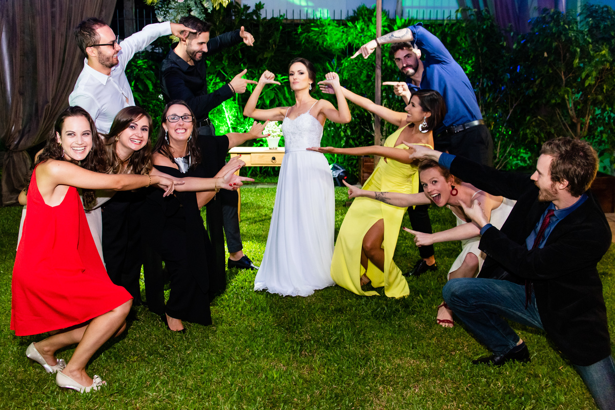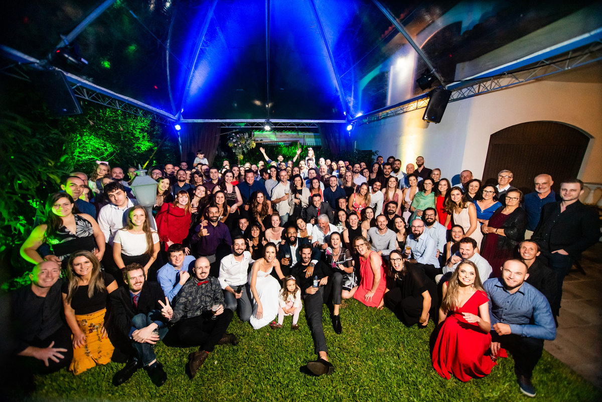 A festa foi, na verdade, um casamento no civil com festa em um casarão gramado da família da Marina, em Caxias do Sul. Com três tendas, bar de coquetéis e uma decoração linda organizada pelo Vandro Santi, o lugar ficou com cara de casa de eventos. Muito mais do que os noivos esperaram.