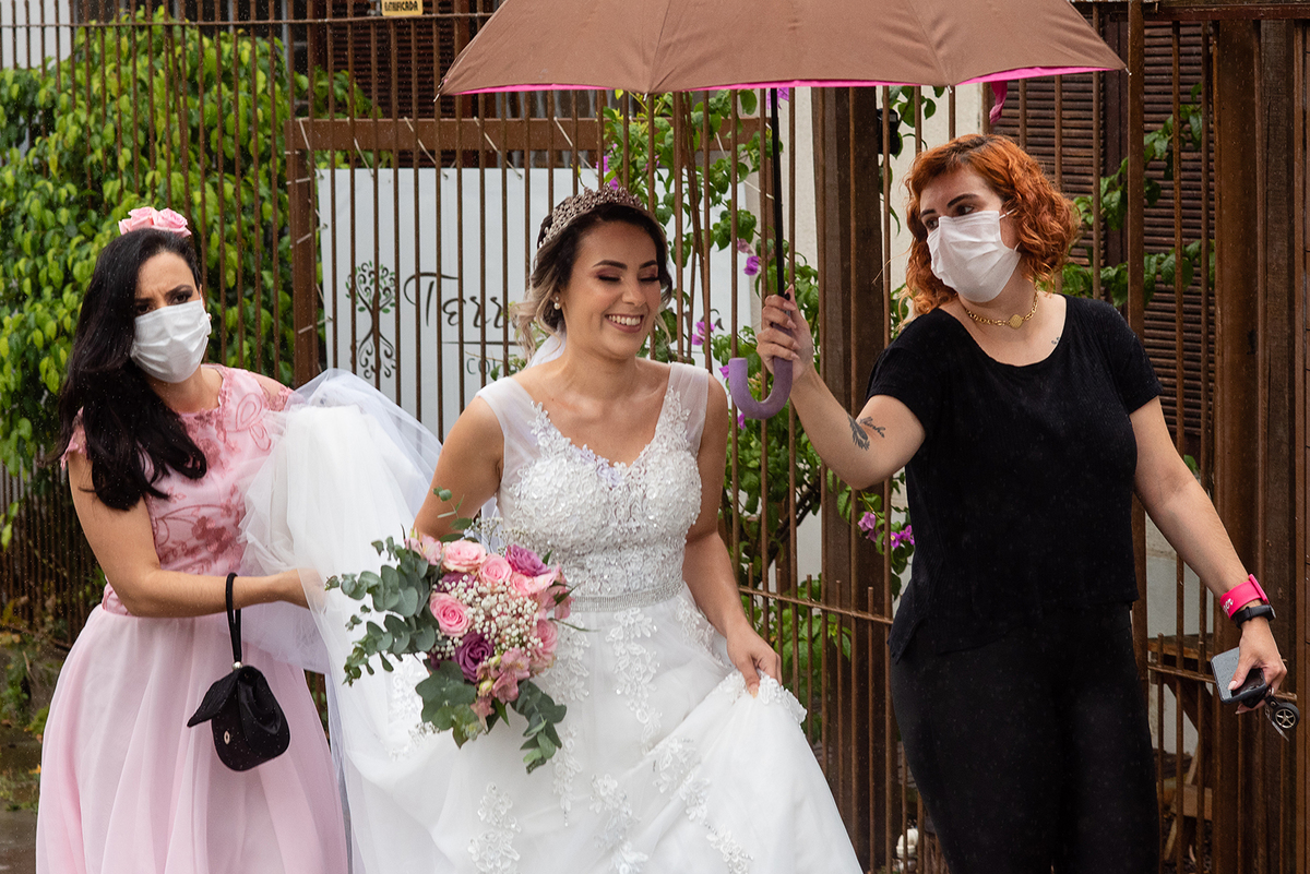 Bem, esse era o plano. Na semana do casamento, a situação da saúde no RS começou a piorar. Vieram decretos mais rígidos por parte do Governo, incluindo o fechamento do comércio, de restaurantes e locais de festa. Enquanto isso, a previsão do tempo passou a marcar chuva para o dia, sendo que o espaço da cerimônia era ao ar livre. O cenário parecia preocupante.