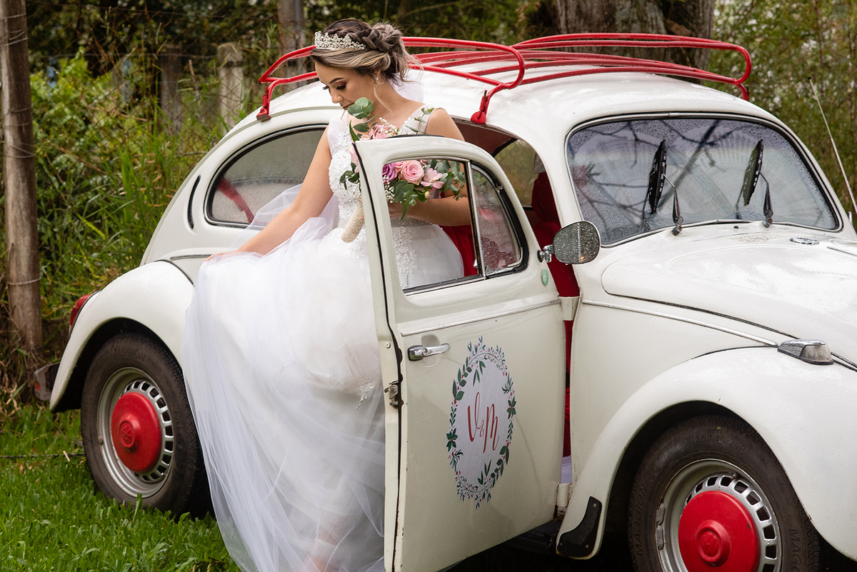Formalizada a contratação, passamos a conversar sobre o dia do sim. A Vanessa chegaria de Fusca, teríamos um discurso embaixo de uma figueira, com a celebração da união do casal, seguida de uma parte cantada e uma oração. A seguir, eles fariam a sua primeira dança como casados, em um trio de músicas coreografadas que representam um pouco dos universos deles (uma romântica, uma brincalhona e uma gauchesca). Finalizando a dança, a ideia era conversar com os convidados que estivessem assistindo ao vivo via Zoom.