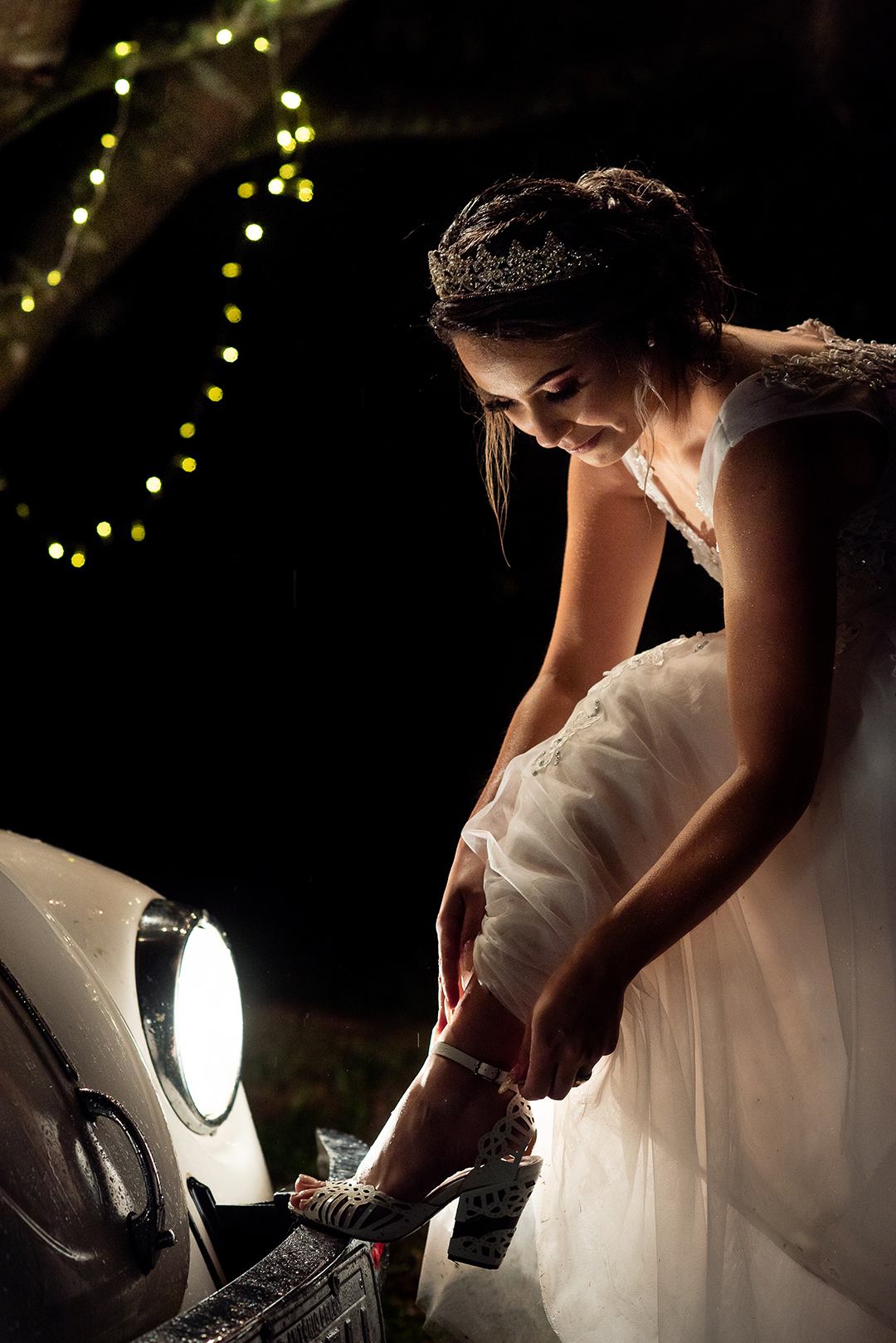 Por causa do tablado molhado pela chuva, a dança oficial foi cancelada. Depois das câmeras desligadas e de fazermos um miniensaio maravilhoso com os noivos, eles mostraram a coreografia que haviam preparado e fiz mais algumas fotos. Logo encerramos a noite: todos molhados e com sorrisos nos rostos.